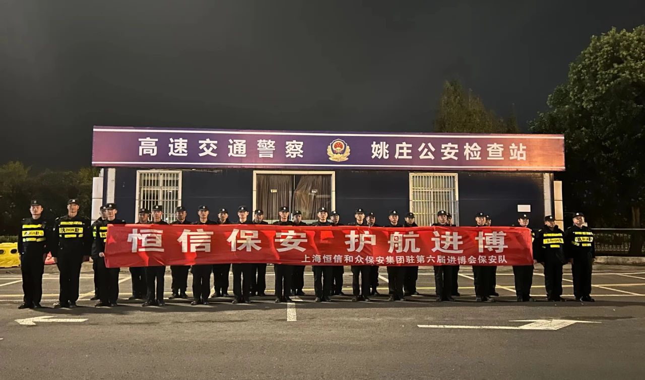 为保障第六届进博会顺利进行,10月25日至11月12日,3044永利集团有限公司派出104名保安队员,分布在进入上海的5个高速、公路道口,负责安检工作,为进博会筑起坚强的外围堡垒。